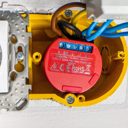 Control and monitor a wide range of home appliances from anywhere with the tiny Wi-Fi-operated relay switch featuring precise power monitoring - Shelly 1PM. From light automatization to electrical appliances control, Shelly 1PM provides accurate power metering with free cloud data storage for further analysis and energy usage optimization. Small enough to fit behind every wall switch or wall socket, Shelly 1PM is retrofitted and can be installed in less than 10 minutes.