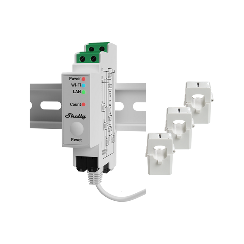 Der Shelly Pro 3EM ist ein WLAN-betriebenes, DIN-montierbares 3-Phasen-Stromverbrauchsmessgerät mit WLAN-, Bluetooth- und LAN-Konnektivität. Mit seiner auf 1 % genauen aktiven Energiemessgenauigkeit kann der Shelly Pro 3EM genutzt werden, um den Verbrauch sämtlicher Haushaltsgeräte, Stromkreise und Bürogeräte einzeln zu überwachen. Historische Daten werden für bis zu 60 Tage gespeichert, wobei jede Phase über eine einminütige Resolution verfügt. Zusätzlich gestatten die Skripting-Funktionalitäten die Ausführung komplexer Szenarien und bieten erweiterte Überwachungsmöglichkeiten.