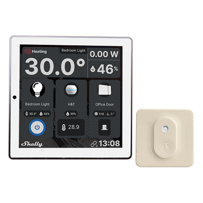 Steuere Deine smarten Geräte mit dem Shelly Wall Display von einem zentralen Ort aus, jetzt in Kombination mit dem Shelly BLU H&T für eine präzise Klimasteuerung.