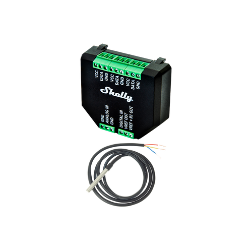 Shelly Plus Add-On est une interface de capteur galvanique compatible avec certains dispositifs Shelly Plus, Gen3 et Gen4. Utilisez ce module pour mesurer la température via ses connexions à un fil ou connectez divers capteurs analogiques et numériques pour des automatisations complexes (par exemple, la mesure de l'humidité de l'air) et une efficacité accrue.