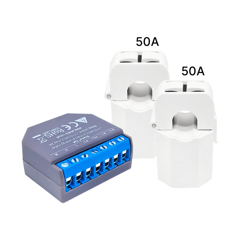 Shelly EM is a Wi-Fi-operated energy meter with contactor control. It allows you to simultaneously monitor the consumption of any home appliances, electric circuits, and office equipment (lights, power lines, security systems, heating, cooling, etc.) in 2 circuits on the same phase or individually. Shelly EM is perfect for measuring solar energy production, monitoring household consumption, and controlling heavier-load appliances.