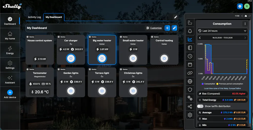 Shelly provides precise monitoring of power consumption and data storage on Shelly cloud