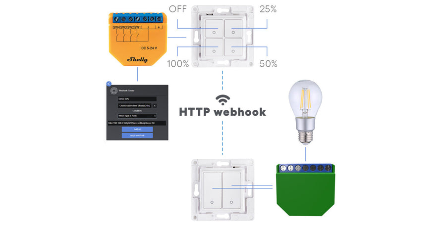 Shelly Plus i4DC is a smart Wi-Fi switch input that allows you to manually activate or deactivate any created scene, run synchronized actions, or execute complex trigger scenarios. You can use Shelly Plus i4DC to control other connected Shelly switches, sensors, or HTTP and MQTT-controlled devices. Small enough to fit behind every wall switch, Shelly Plus i4DC can show the status and control the action of four inputs.