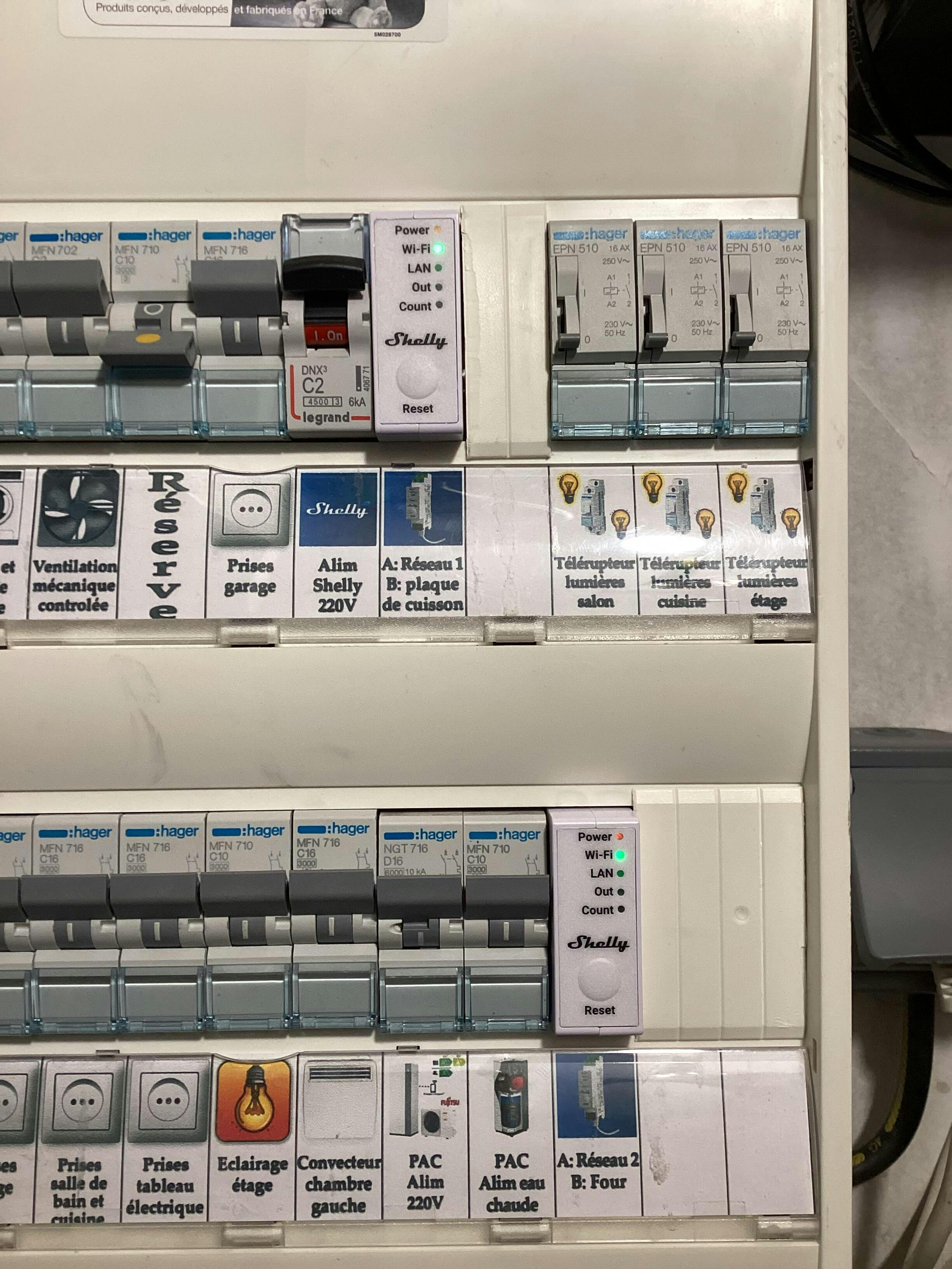 Shelly Pro EM-50 is a DIN-mountable 1-Phase Energy Meter with an integrated switch for contactor control. With active energy measurement accuracy of 1%, Shelly Pro ЕМ-50 can be used to monitor the consumption of and control any home appliances, electric circuits, and office equipment. It features 60 days of on-device historical data with a 1-minute resolution. Additionally, its scripting functionalities allow for the execution of complex scenes and provide broader monitoring abilities.