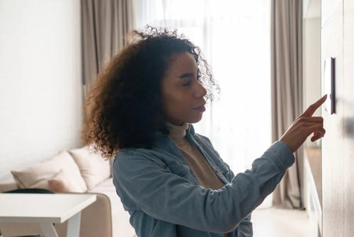 Shelly Wall Display can also function as a thermostat, presenting an intuitive interface for monitoring, managing, and fine-turning your heating or cooling settings. Equipped with an integrated temperature sensor, it works to craft an optimal energy-efficient experience. If you want to measure the temperature with precision in bigger rooms, it can also receive additional information from an external sensor. It then collaborates with other Shelly devices to adjust heating or cooling and maintain a comfortable living environment based on your preferences.